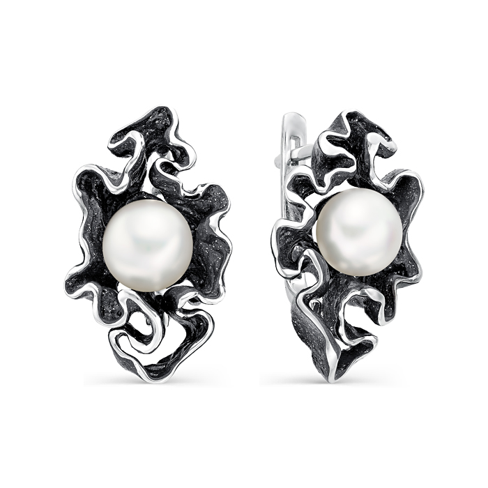 Серьги из серебра с камнем Жемчуг, вставками эмали
