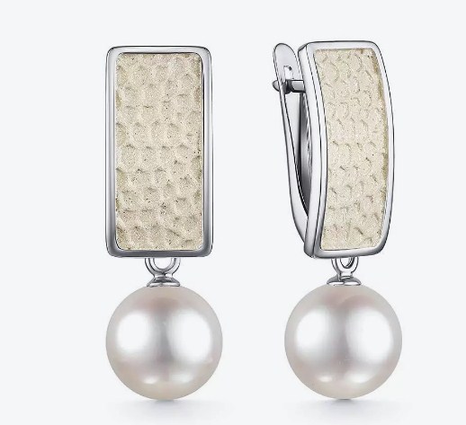 Серьги из серебра с камнем Жемчуг, вставками эмали