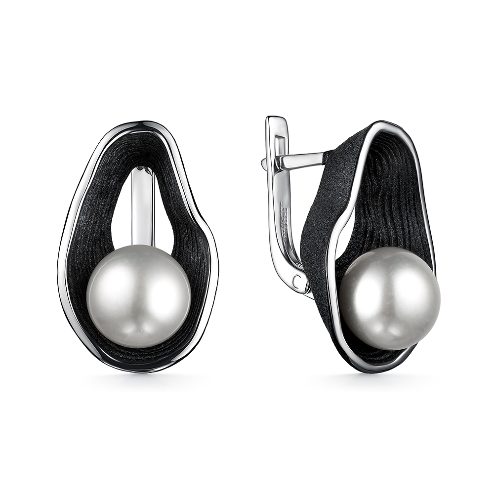 Серьги из серебра с камнем Жемчуг, вставками эмали