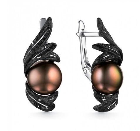 Серьги из серебра с камнем Жемчуг, вставками эмали