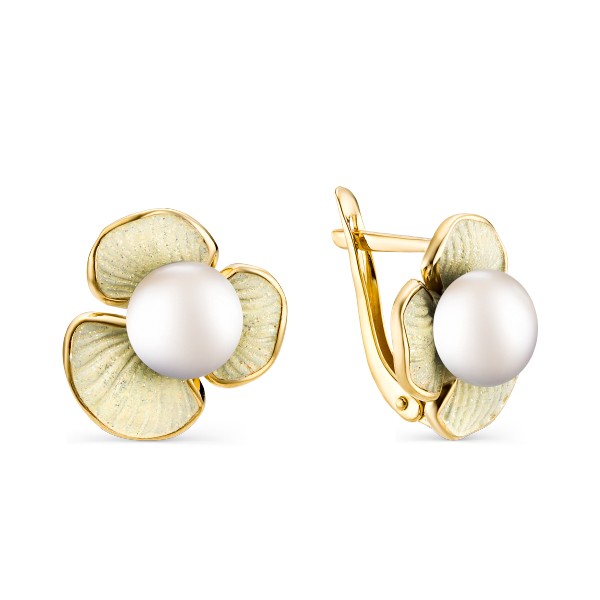 Серьги, Золотое покрытие | Жемчуг ,Эмаль шампань |