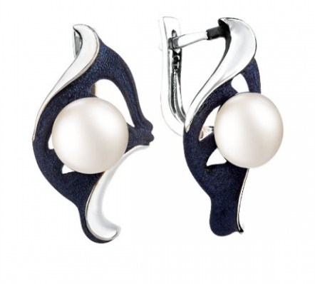 Серьги из серебра с камнем Жемчуг, вставками эмали