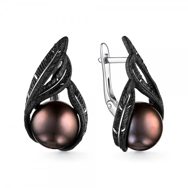 Серьги из серебра с камнем Жемчуг, вставками эмали