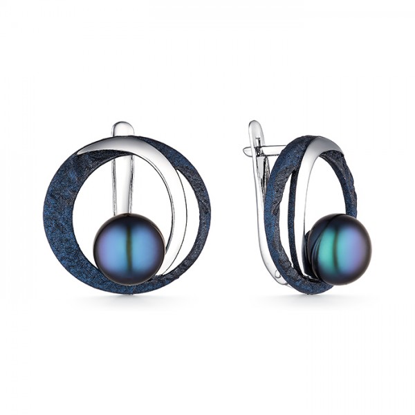 Серьги из серебра с камнем Жемчуг, вставками эмали