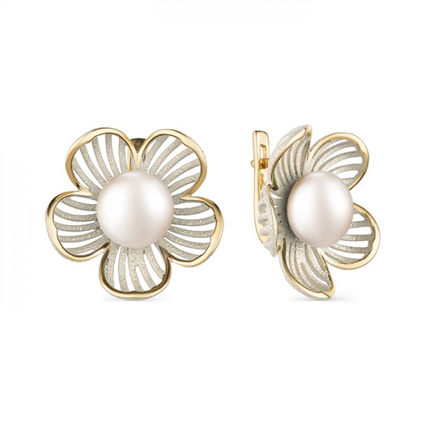 Серьги, Золотое покрытие | Жемчуг ,Эмаль шампань |