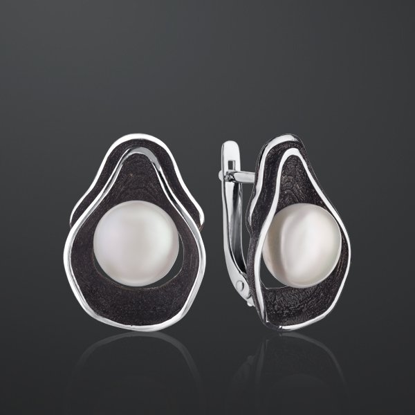 Серьги из серебра с камнем Жемчуг, вставками эмали