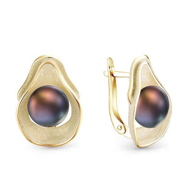 Серьги | Жемчуг Черный ,Эмаль шампань |