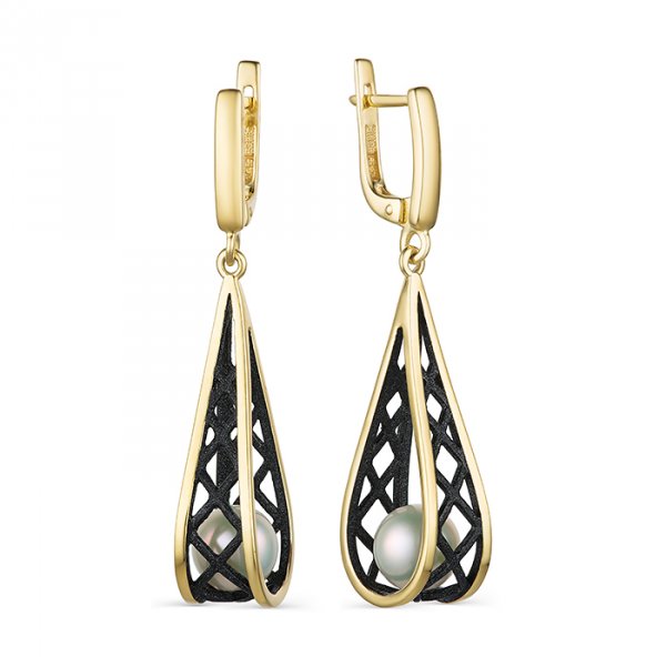 Серьги, Золотое покрытие | Жемчуг ,Эмаль Черный