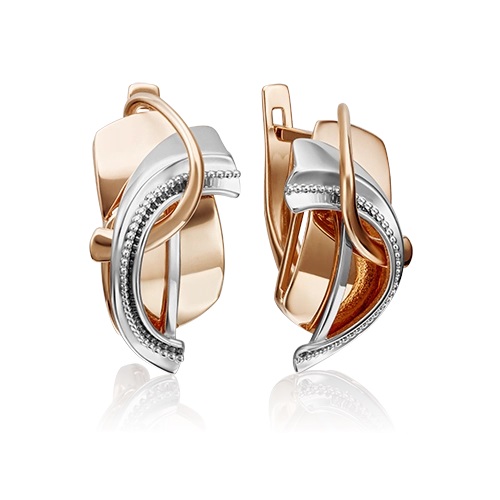 Объёмные серьги с английским замком из красного и белого золота 585 пробы из коллекции ИЛЛЮЗИИ от ювелирного бренда PLATINA. Дизайн украшения сложный и многоуровневый. Дополняют дизайн дорожки из миниатюрных золотых гранул. Глянцевый блеск золота усиливает сияние камней. Серьги подойдут для вечерних и праздничных мероприятий, а также к деловому и повседневному гардеробу.