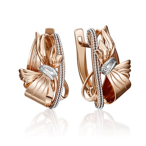 Элегантные и эффектные серьги из красного золота 585 пробы из коллекции ИЛЛЮЗИИ от ювелирного бренда PLATINA. Дизайн украшения сложный, многоуровневый. Дополняют дизайн фактурные узоры, нанесённые с помощью лазерной гравировки, дорожки из миниатюрных золотых гранул и покрытие белым родием. Родирование выполнено вручную. Серьги подойдут для вечерних и праздничных мероприятий, а также к деловому и повседневному гардеробу.