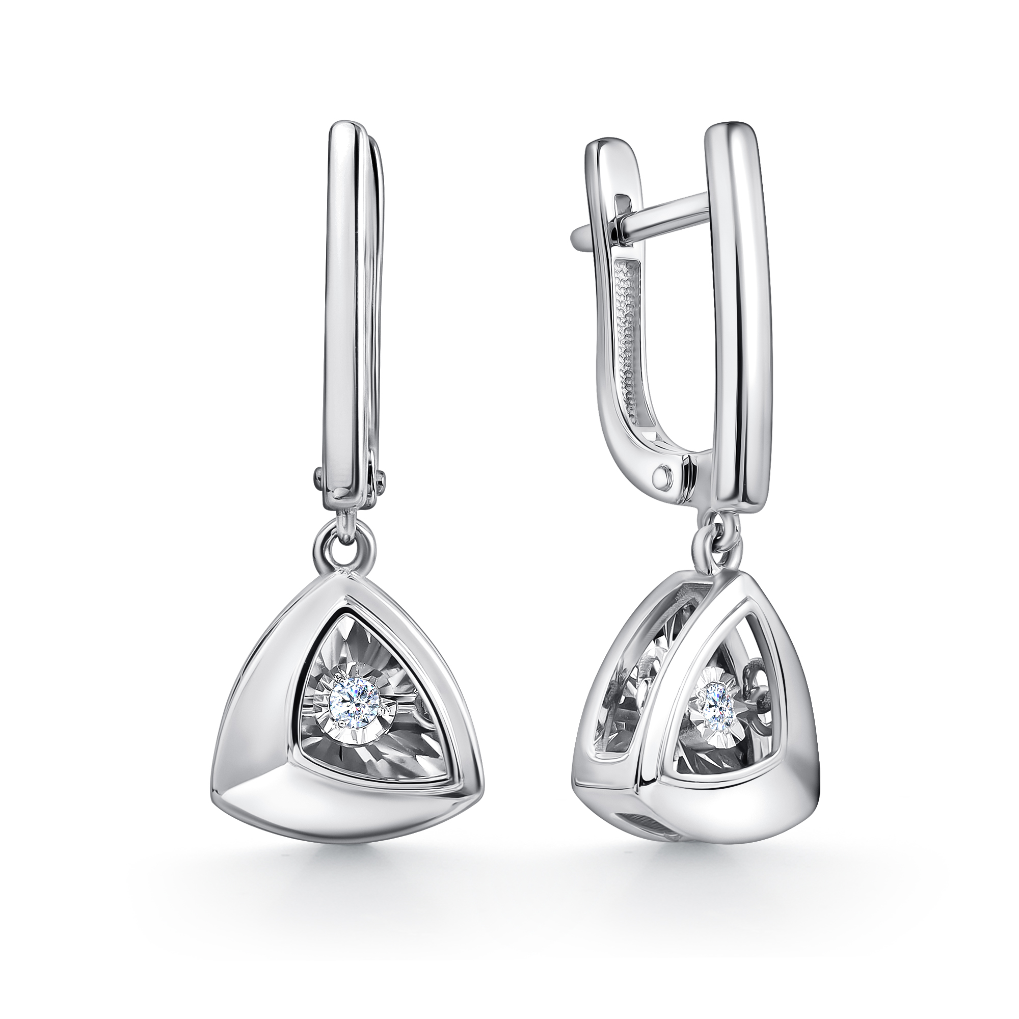 Серьги, Белый | 2 Бриллиант танцующий кр-57 0,045 4/5А |