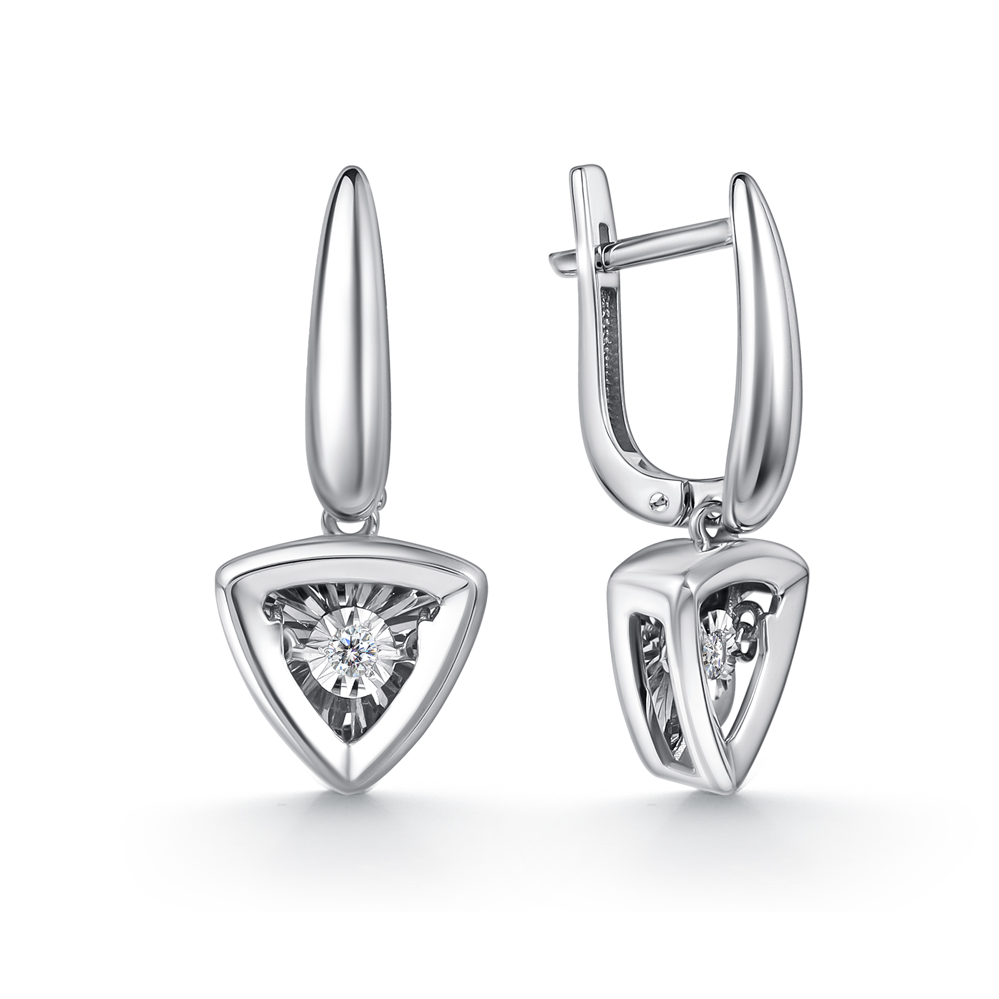 Серьги, с подвесным элементом, Белый | 2 Бриллиант танцующий кр-57 0,082 4/5А |