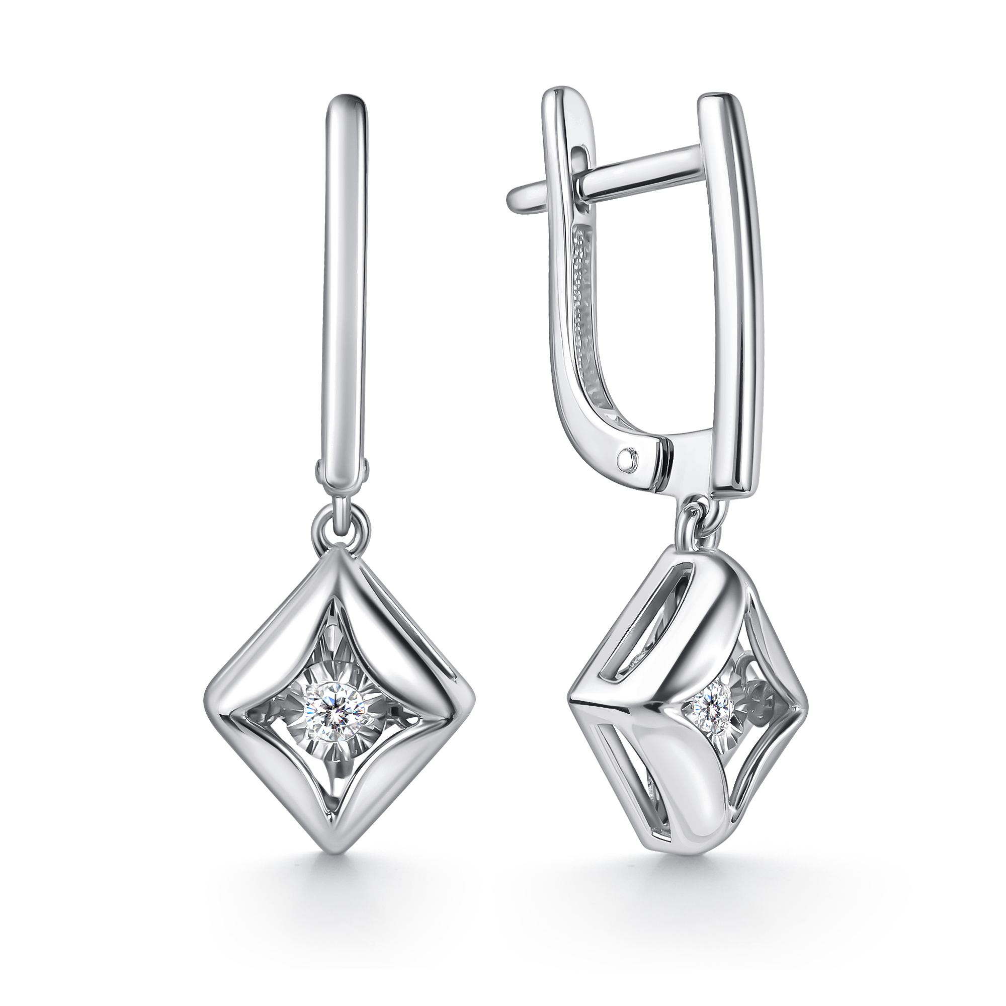 Серьги, с подвесным элементом, Белый | 2 Бриллиант танцующий кр-57 0,083 4/5А |