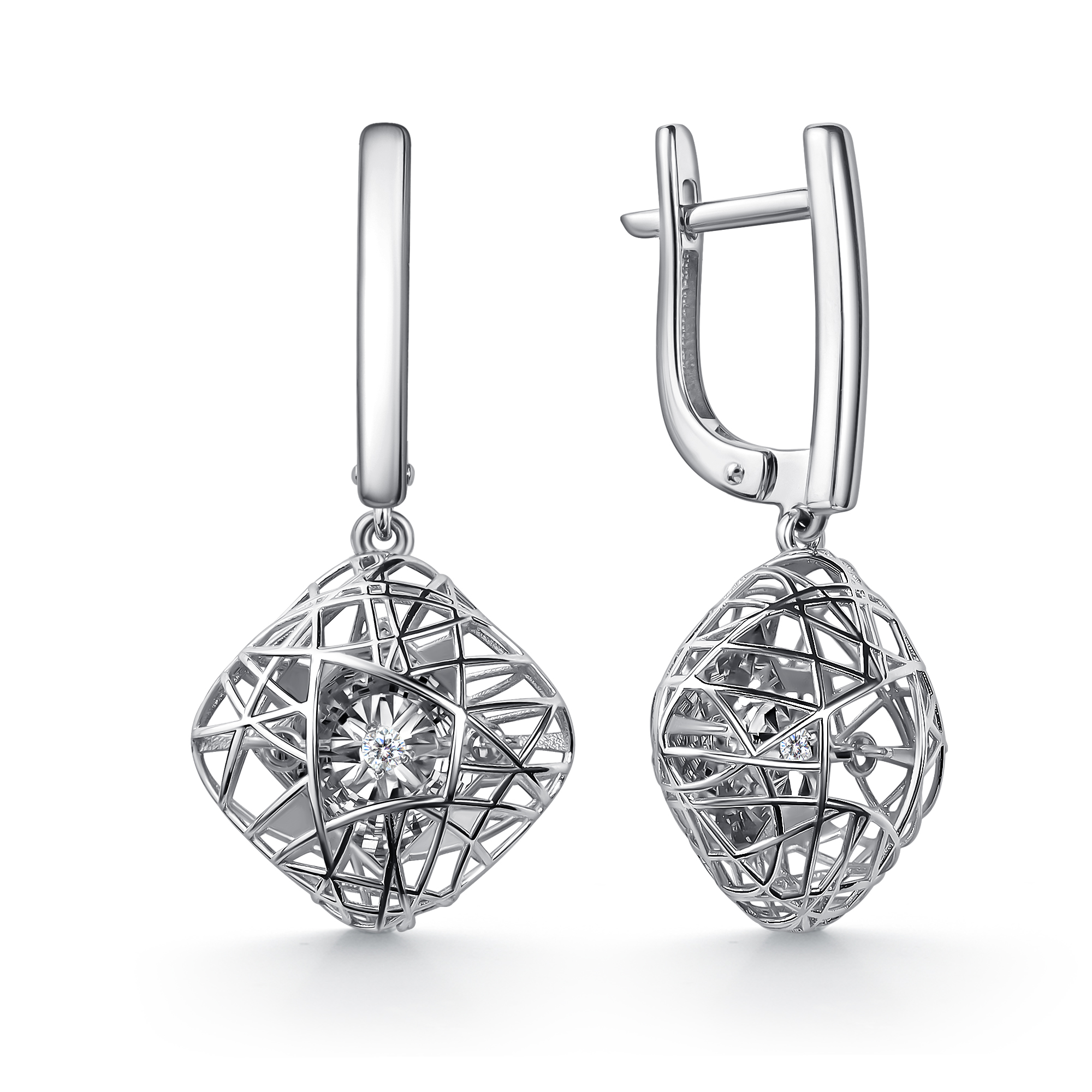 Серьги, с подвесным элементом, Белый | 2 Бриллиант танцующий кр-57 0,045 4/5А |