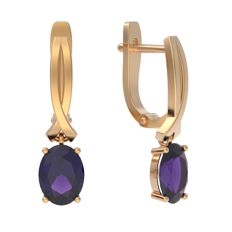 Серьги из золота с камнем аметист