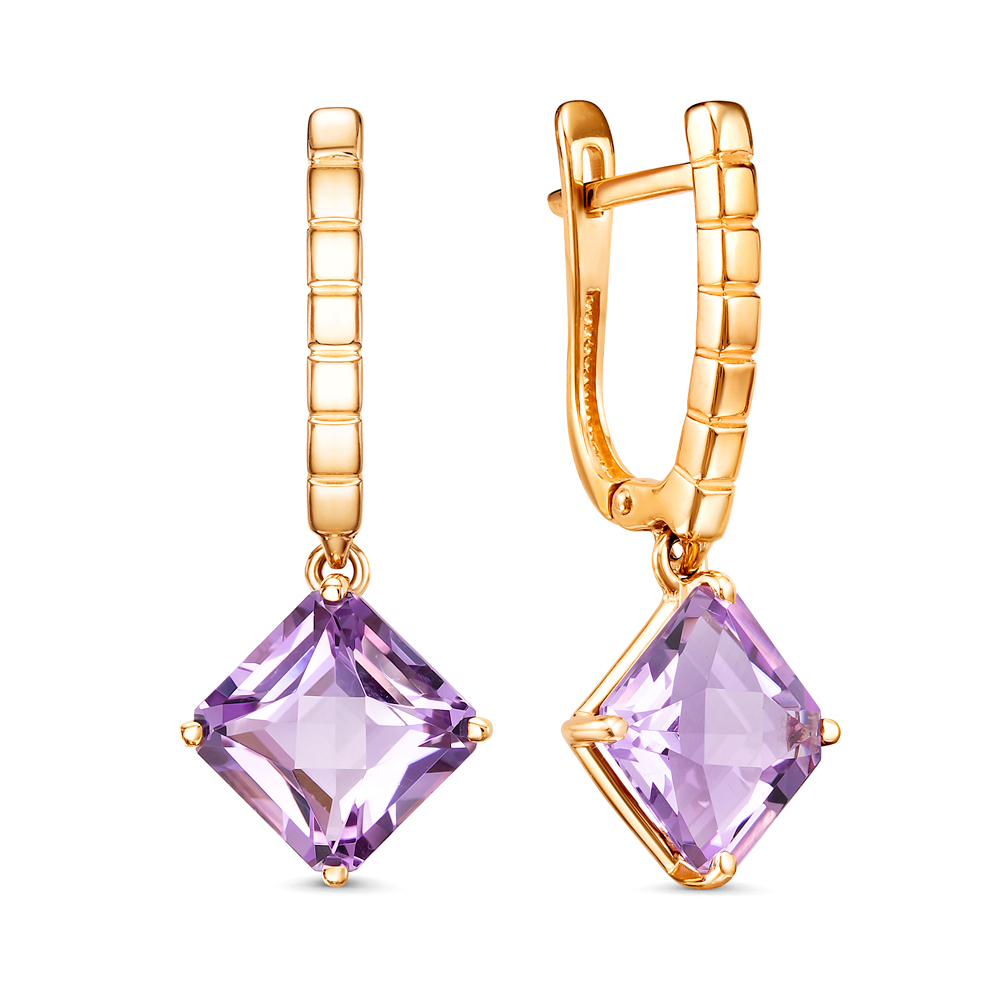 Серьги из золота с камнем аметист
