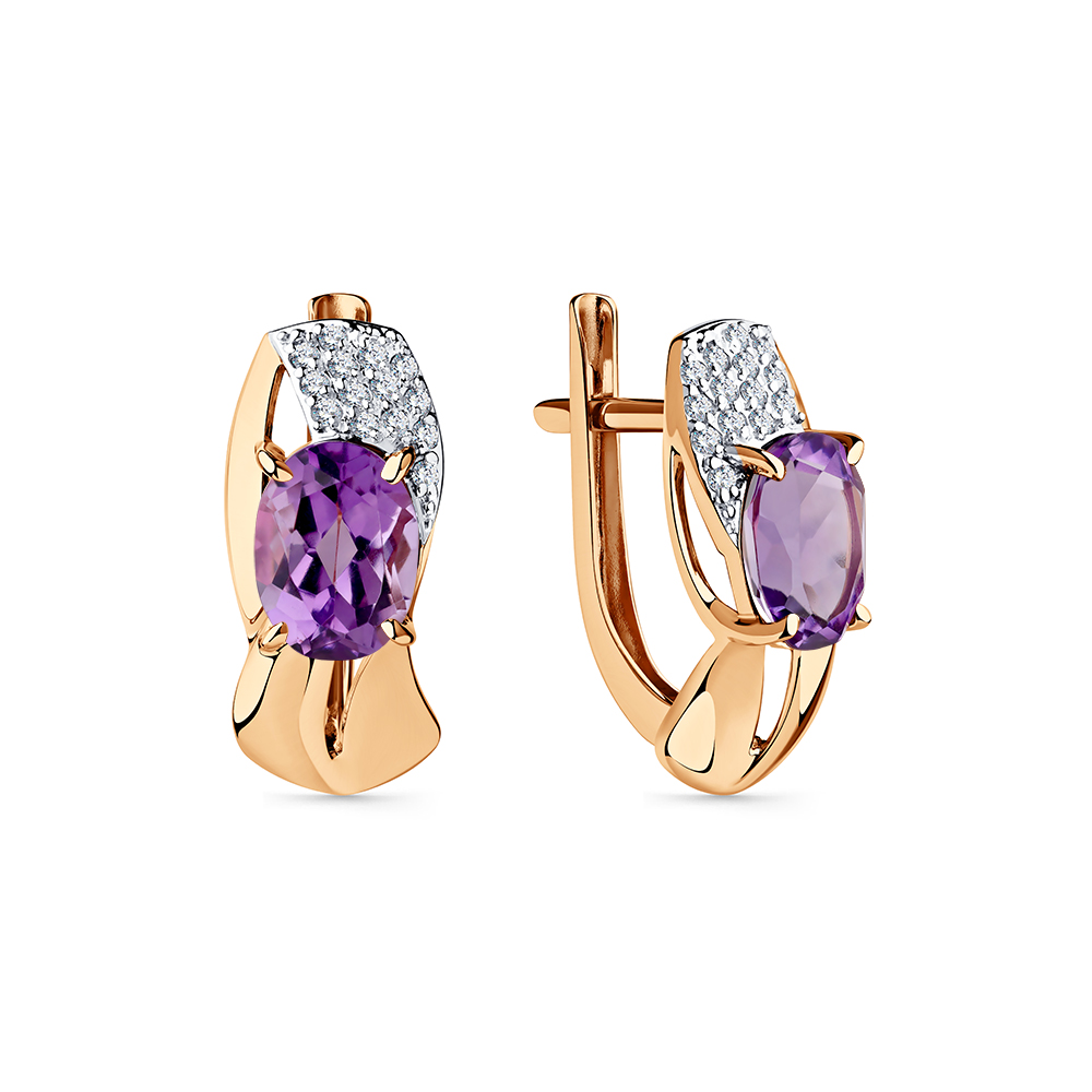 Серьги из золота с камнем аметист, Фианит