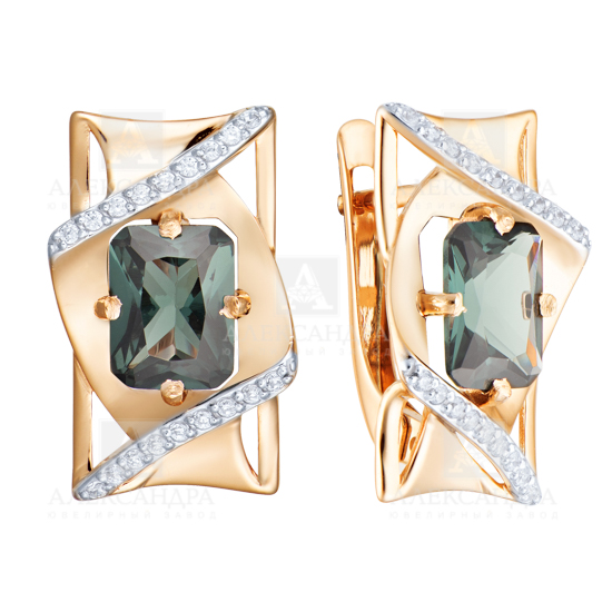 Серьги из золота с камнем аметист, Фианит