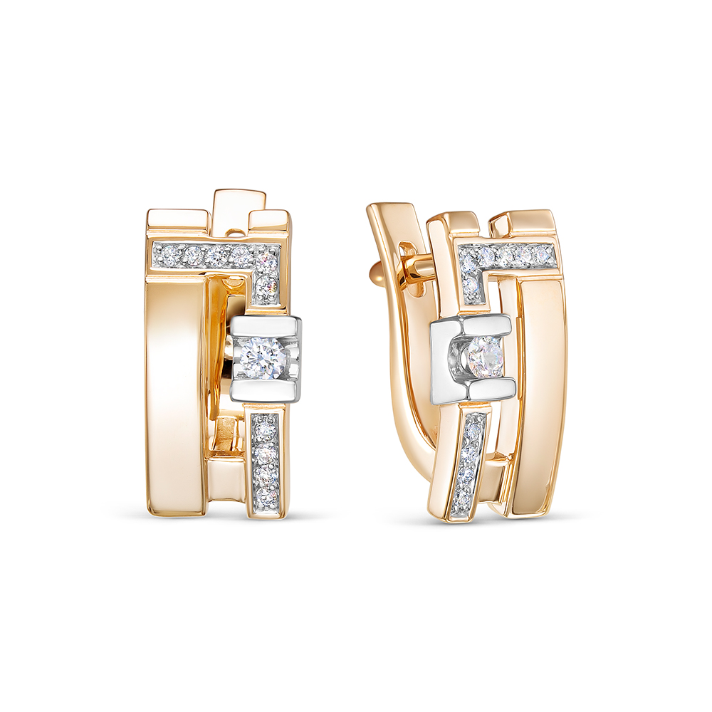 Серьги, Комбинированное | 2 Бр кр-57 0,091Ct 3/5А ,20 Бр кр-57 0,082Ct 3/5А |