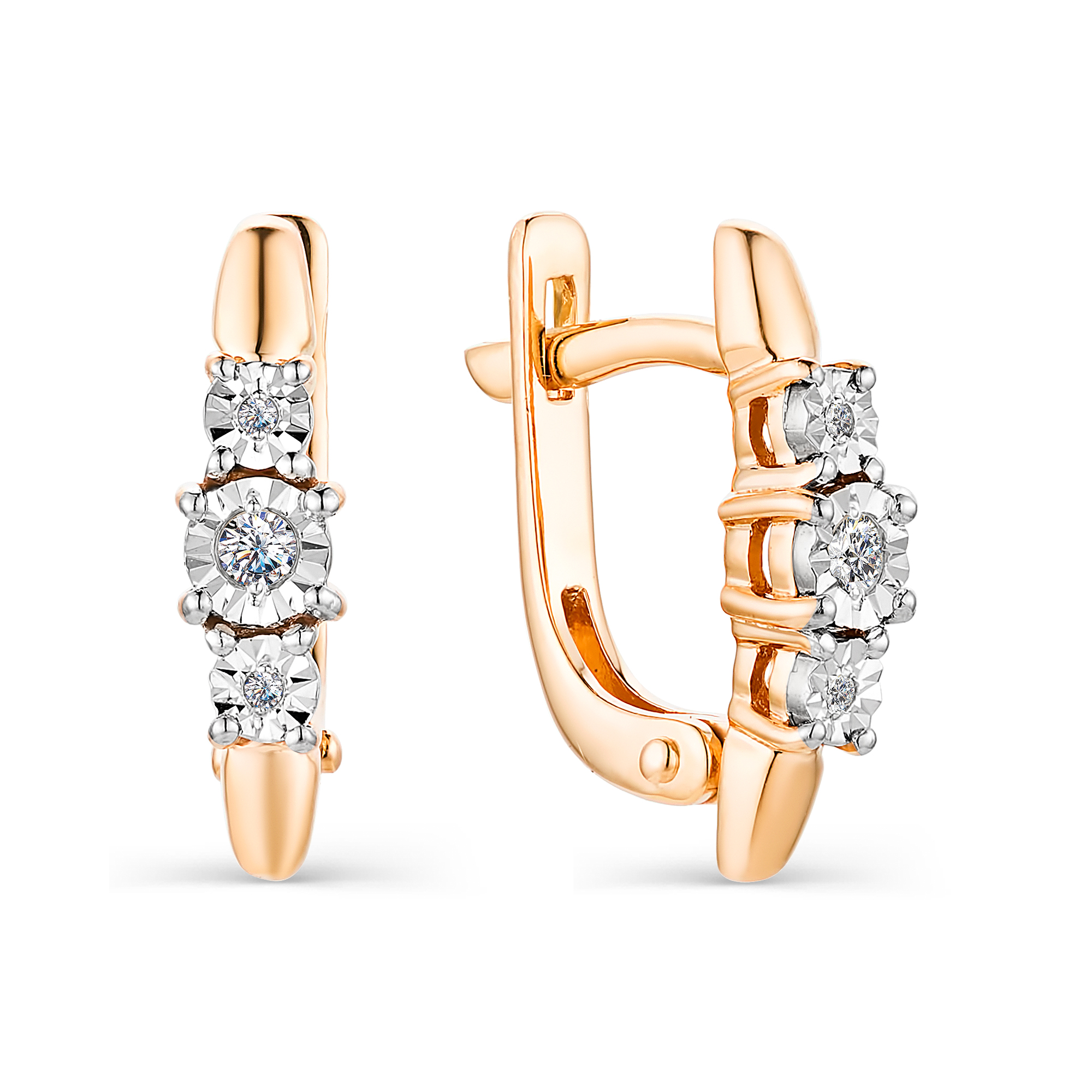 Серьги, с а/г, Комбинированное | 2 Бр кр-57 0,043Ct 4/4А ,4 Бр кр-57 0,015Ct 4/4А |