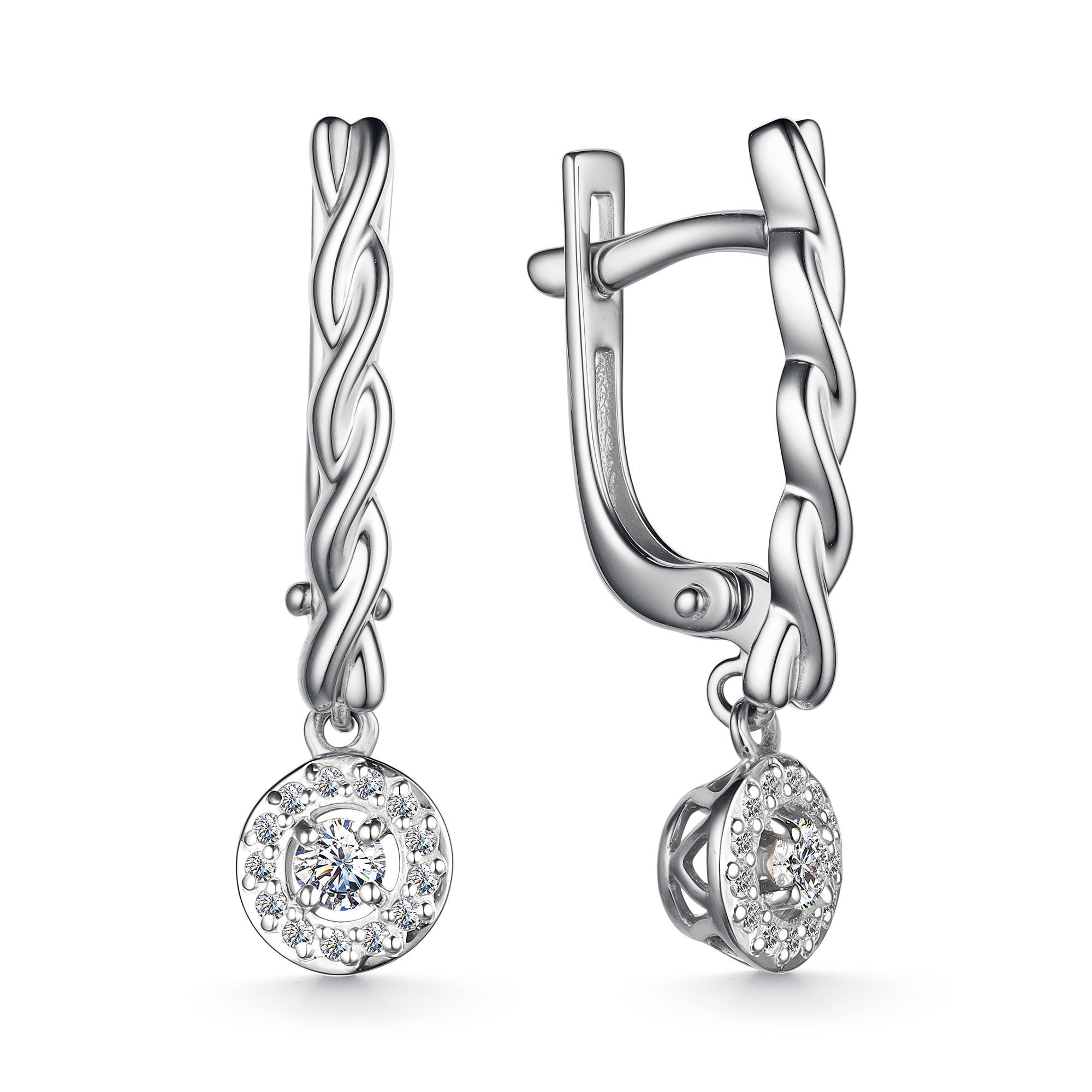 Серьги, с подвесным элементом, Белый | 2 Бр кр-57 0,153Ct 4/6А ,26 Бр кр-57 0,072Ct 4/6А |