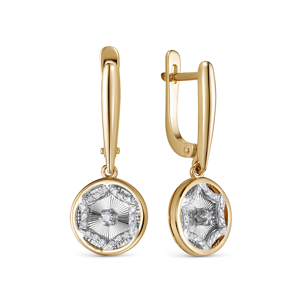 Серьги, с подвесным элементом, Комбинированное | 38 Бр кр-57 0,114Ct 3/6А |