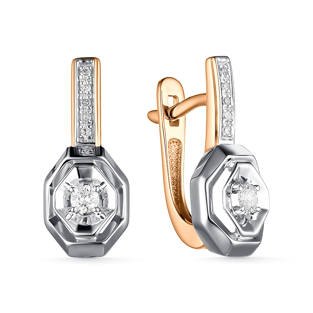 Серьги, Комбинированное | 10 Бр кр-17 0,048Ct 2/3А ,2 Бр Кр 57 0,137Ct 3/6А |
