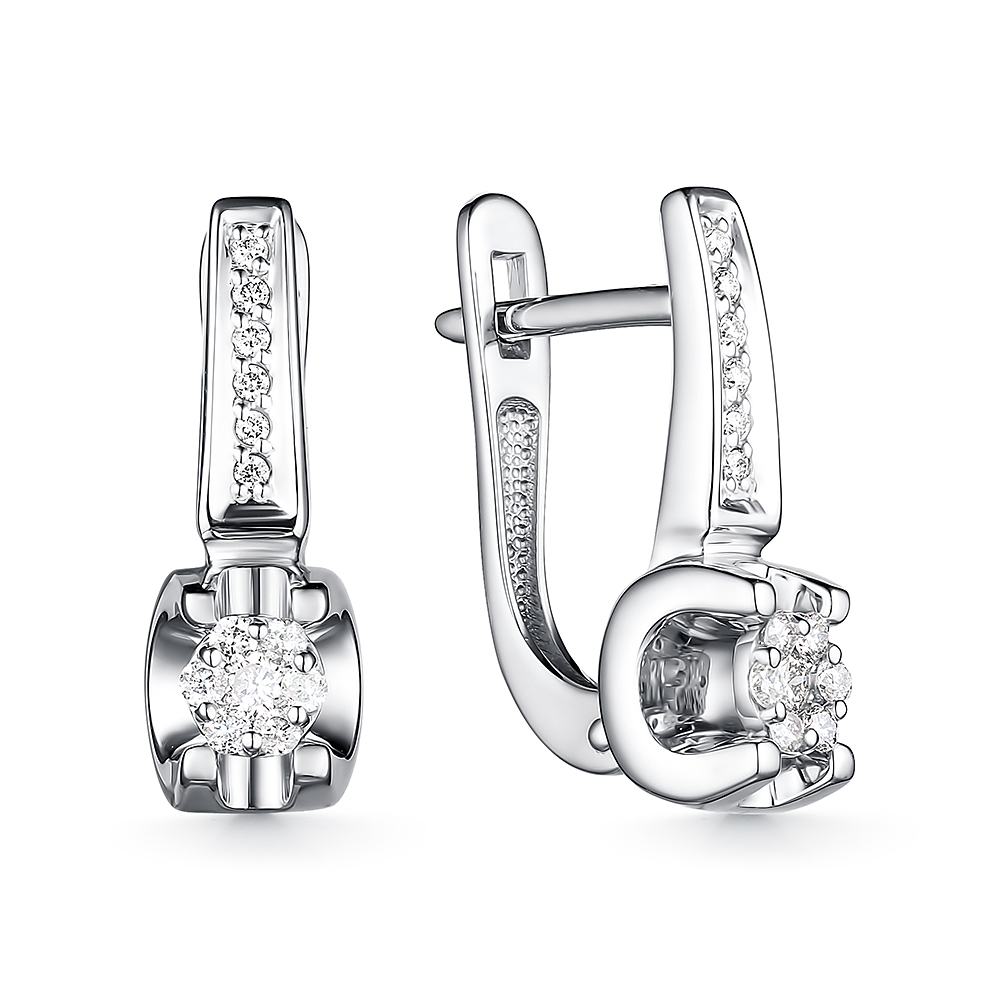 Серьги, Белый | 12 Бр кр-57 0,102Ct 4/5А ,12 Бр кр-57 0,052Ct 4/5А ,2 Бр кр-57 0,046Ct 4/5А |