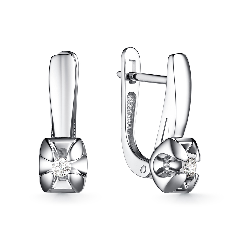 Серьги, Белый | 2 Бр кр-57 0,115Ct 4/5А |