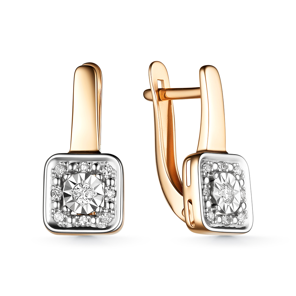 Серьги, Комбинированное | 16 Бр кр-17 0,076Ct 2/3А ,2 Бр кр-57 0,077Ct 3/6А |