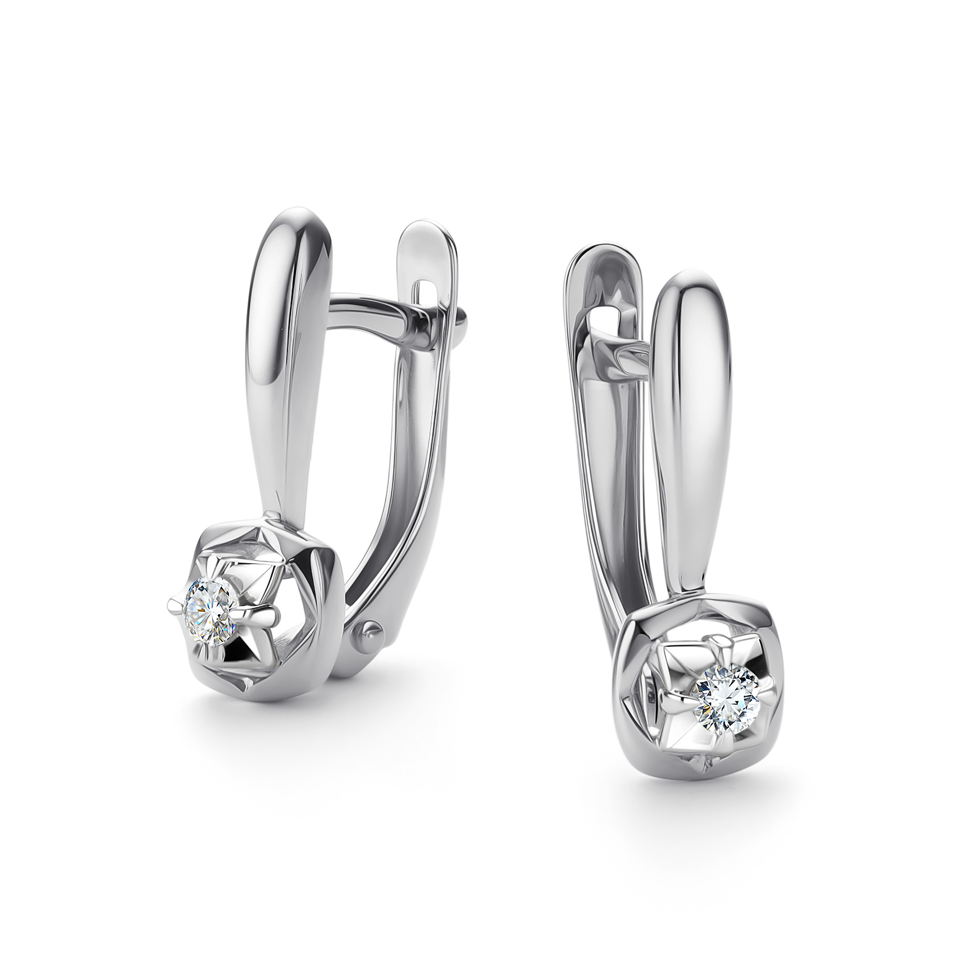 Серьги, Белый | 2 Бр кр-57 0,090Ct 4/6А |