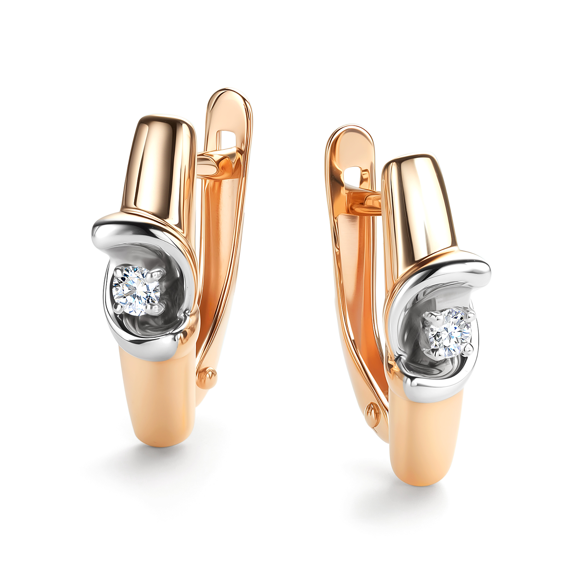 Серьги, Комбинированное | 2 Бр кр-57 0,086Ct 4/6А |