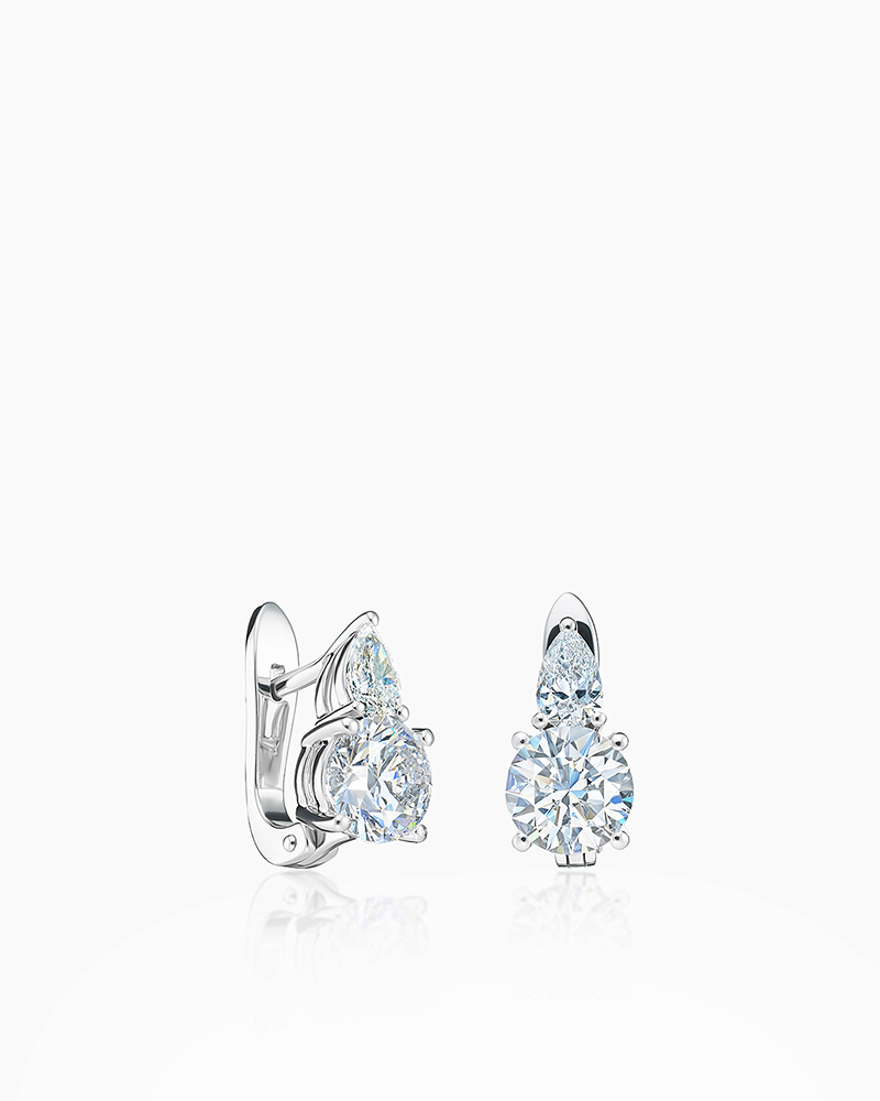 Серьги, Белый | 1 Бр кр-57 1,000Ct 4/8 ,1 Бр кр-57 1,000Ct 4/7 ,2 Бр Г 56 0,380Ct 3/5 |