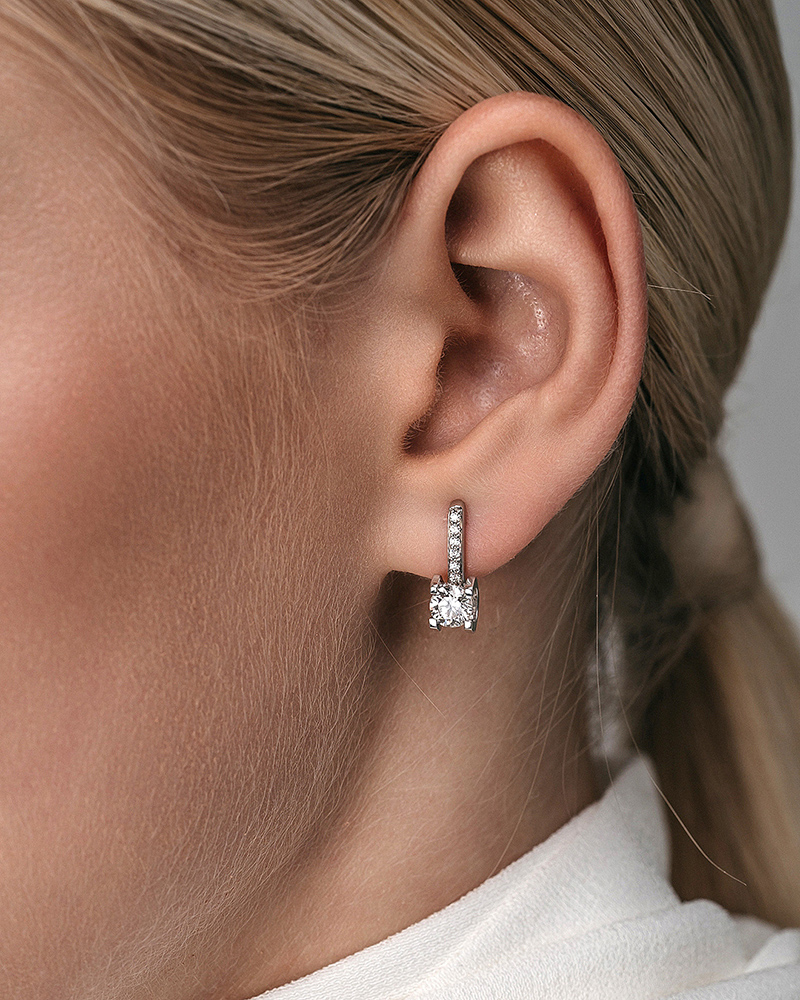 Серьги, Белый | 2 Бр кр-57 1,000Ct 4/7 ,12 Бр кр-57 0,090Ct 3/4 |