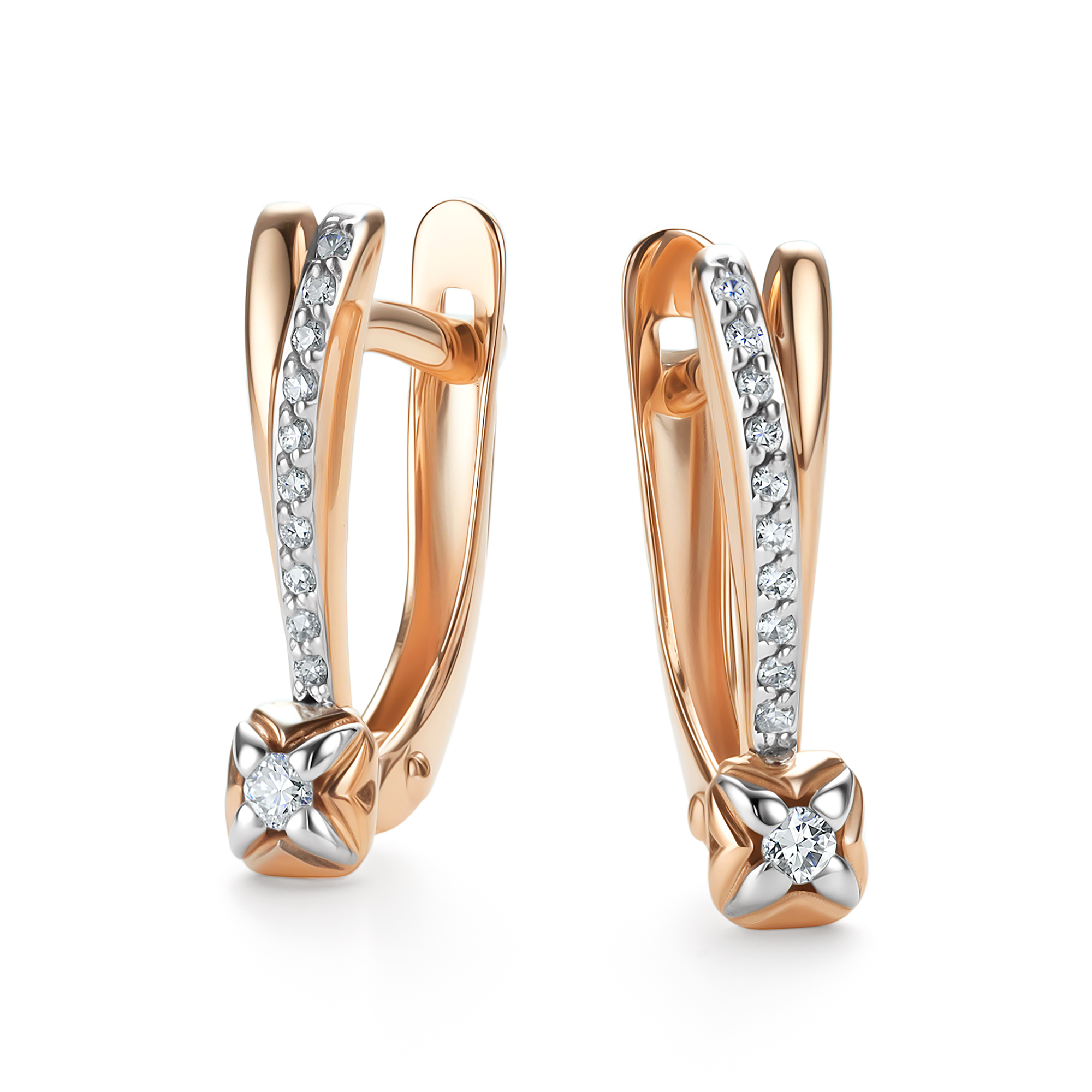 Серьги, Комбинированное | 22 Бр кр-57 0,100Ct 4/5А |