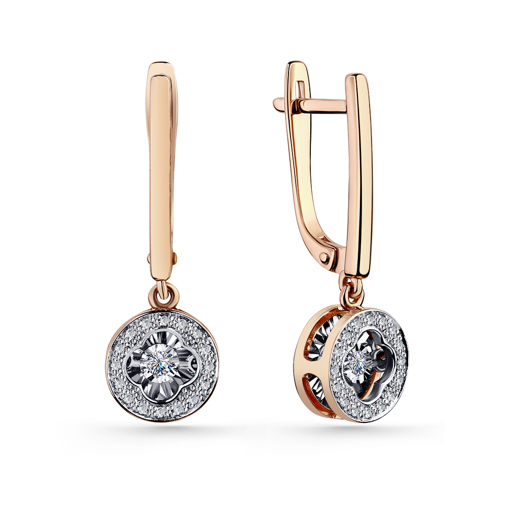 Серьги, Комбинированное | 32 Бр кр-17 0,084Ct 2/3А ,2 Бриллиант танцующий кр-57 0,044 4/5А |