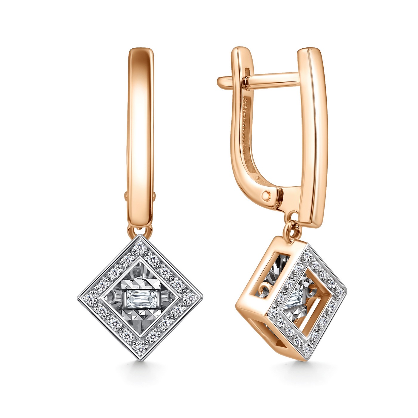 Серьги, с подвесным элементом | 32 Бр кр-57 0,118Ct 4/5А ,2 Бриллиант танцующий бп-25 0,099 3/5А |