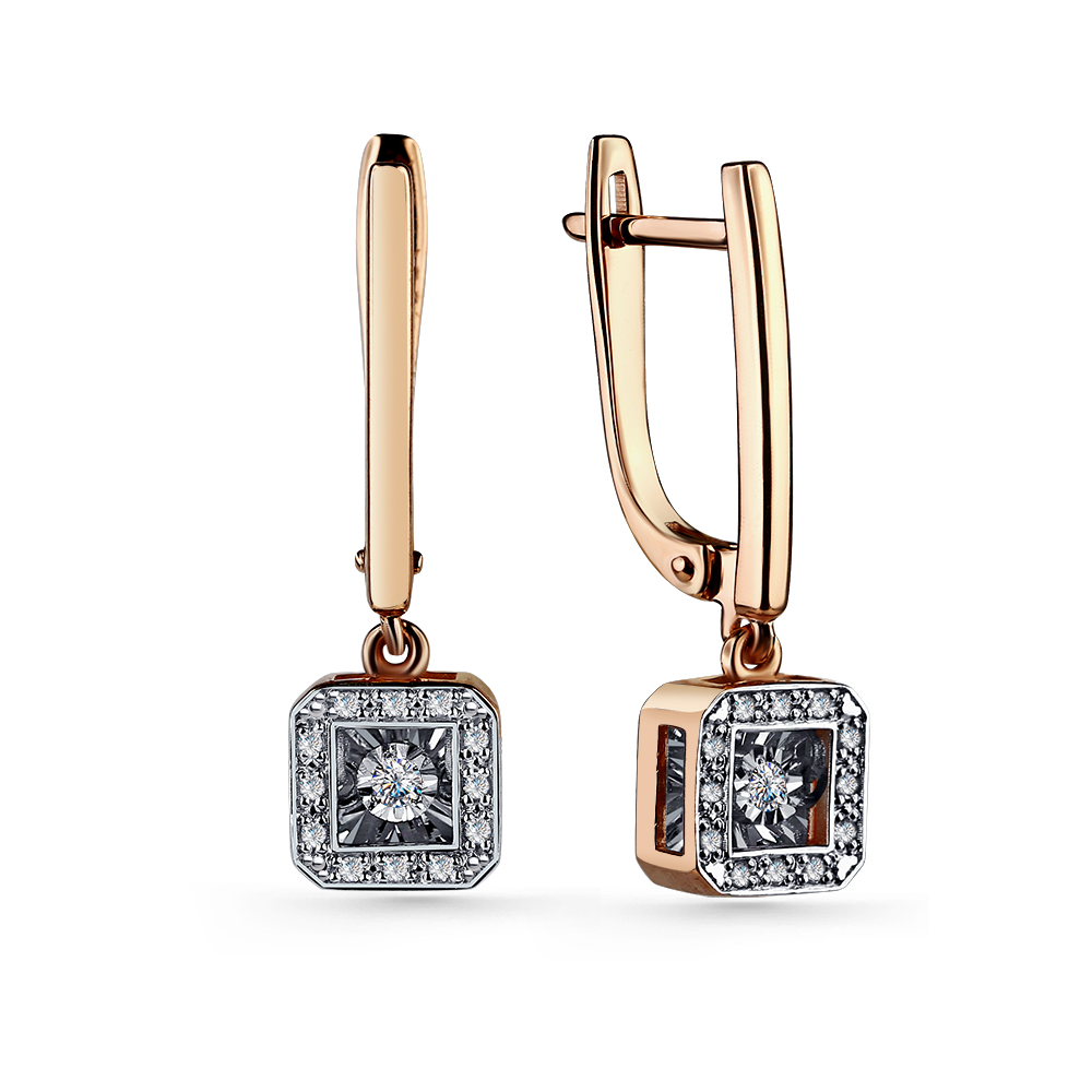 Серьги, с подвесным элементом | 24 Бр кр-17 0,086Ct 2/3А ,2 Бриллиант танцующий кр-57 0,027 4/5А |