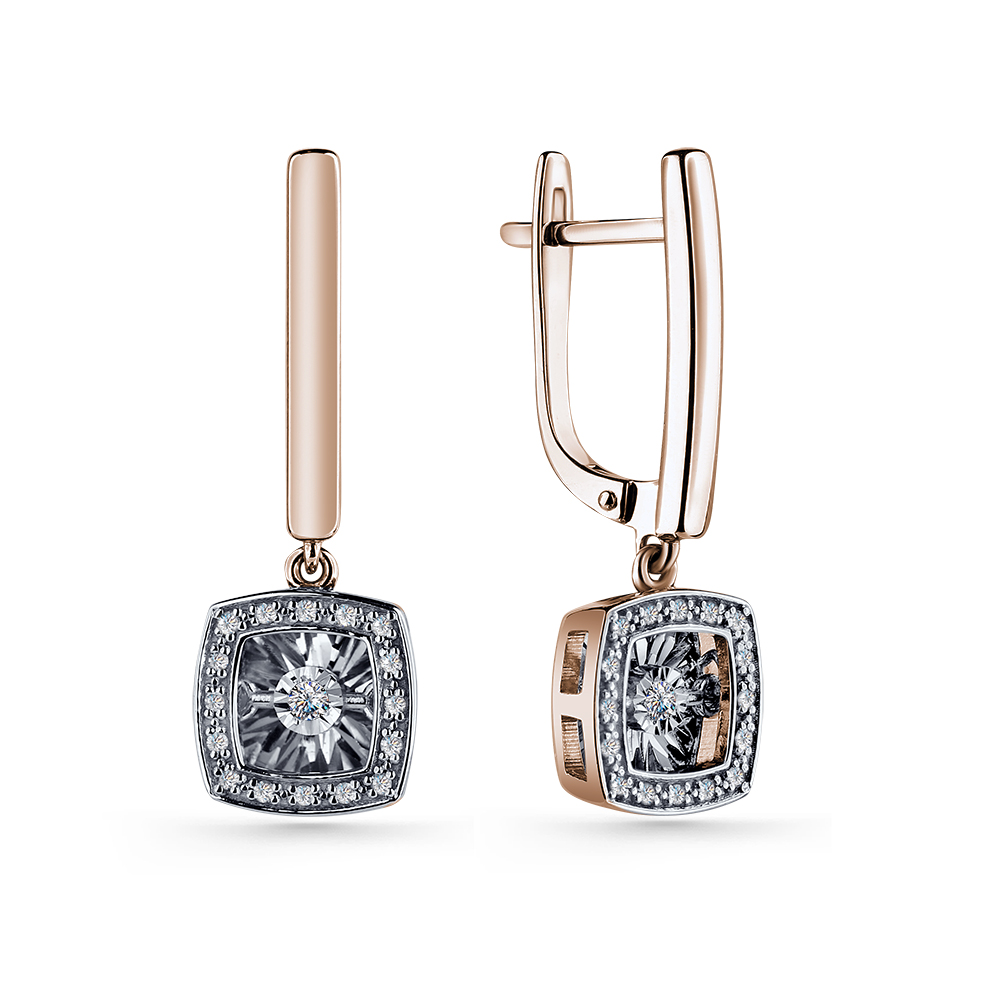 Серьги, с подвесным элементом | 32 Бр кр-17 0,107Ct 2/3А ,2 Бриллиант танцующий кр-57 0,029 3/6А |