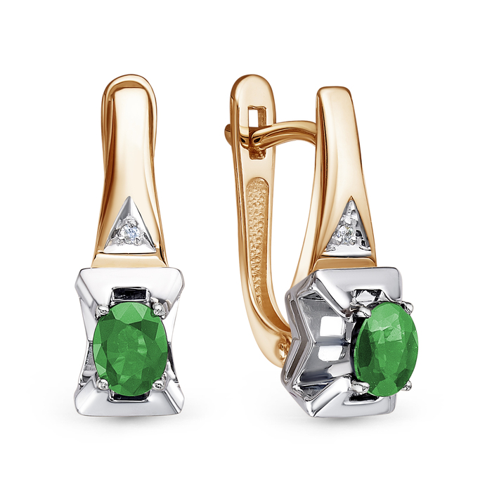 Серьги из золота с камнем Бриллиант, Изумруд