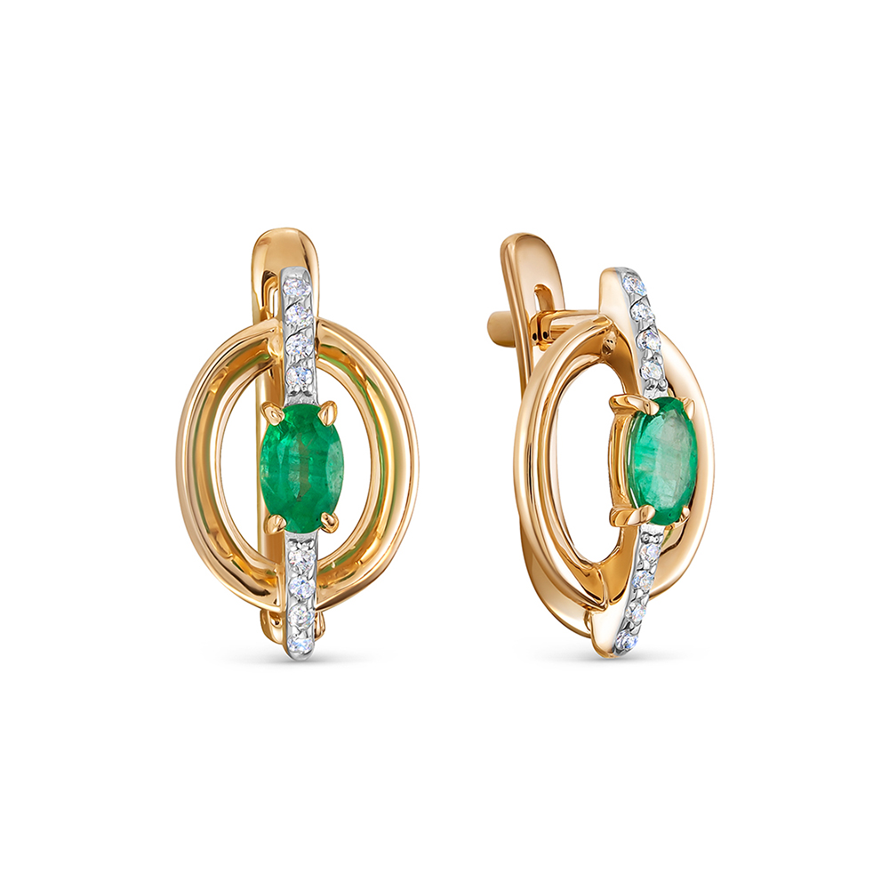 Серьги из золота с камнем Бриллиант, Изумруд