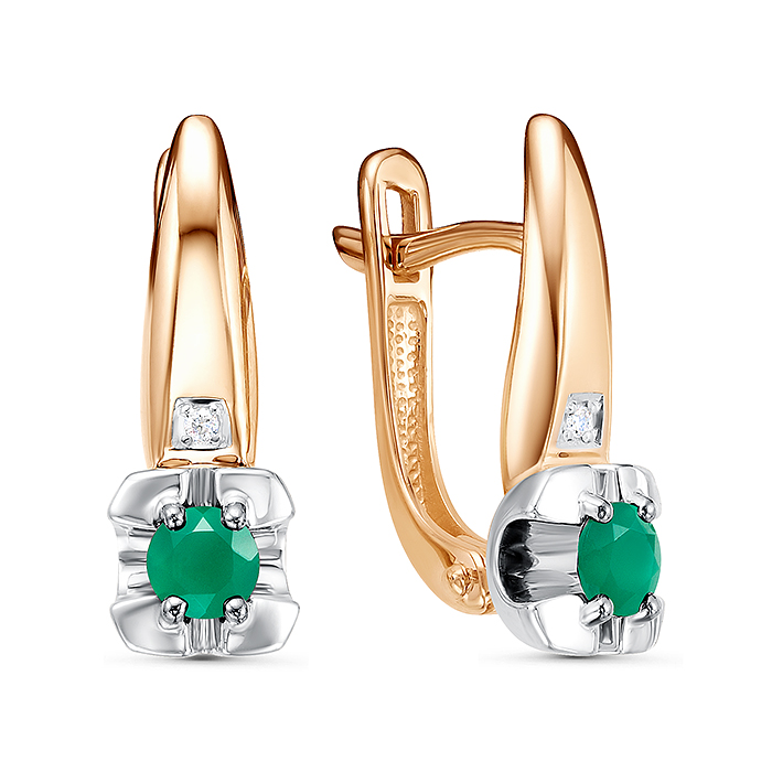 Серьги из золота с камнем Бриллиант, Изумруд