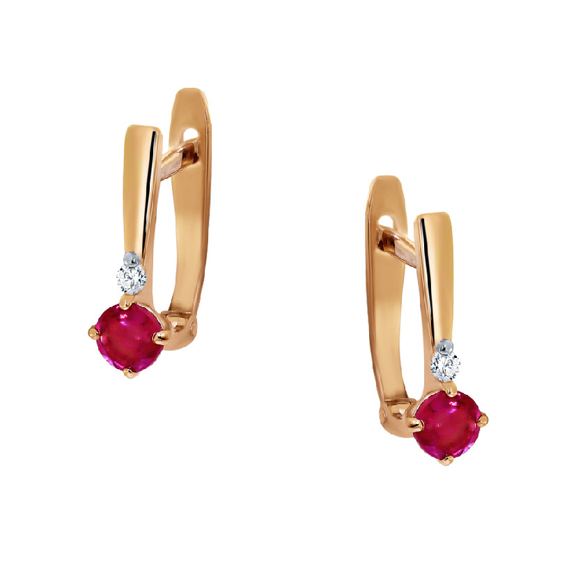 Серьги из золота с камнем Бриллиант, Рубин