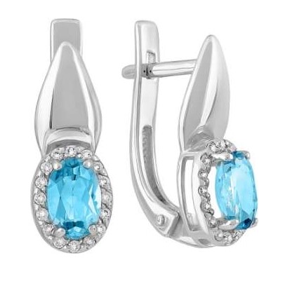 Серьги, Белый | 32 Бр кр-57 0,144Ct 3/6А ,2 Сапфир Ов 1,028Ct 2/2 |