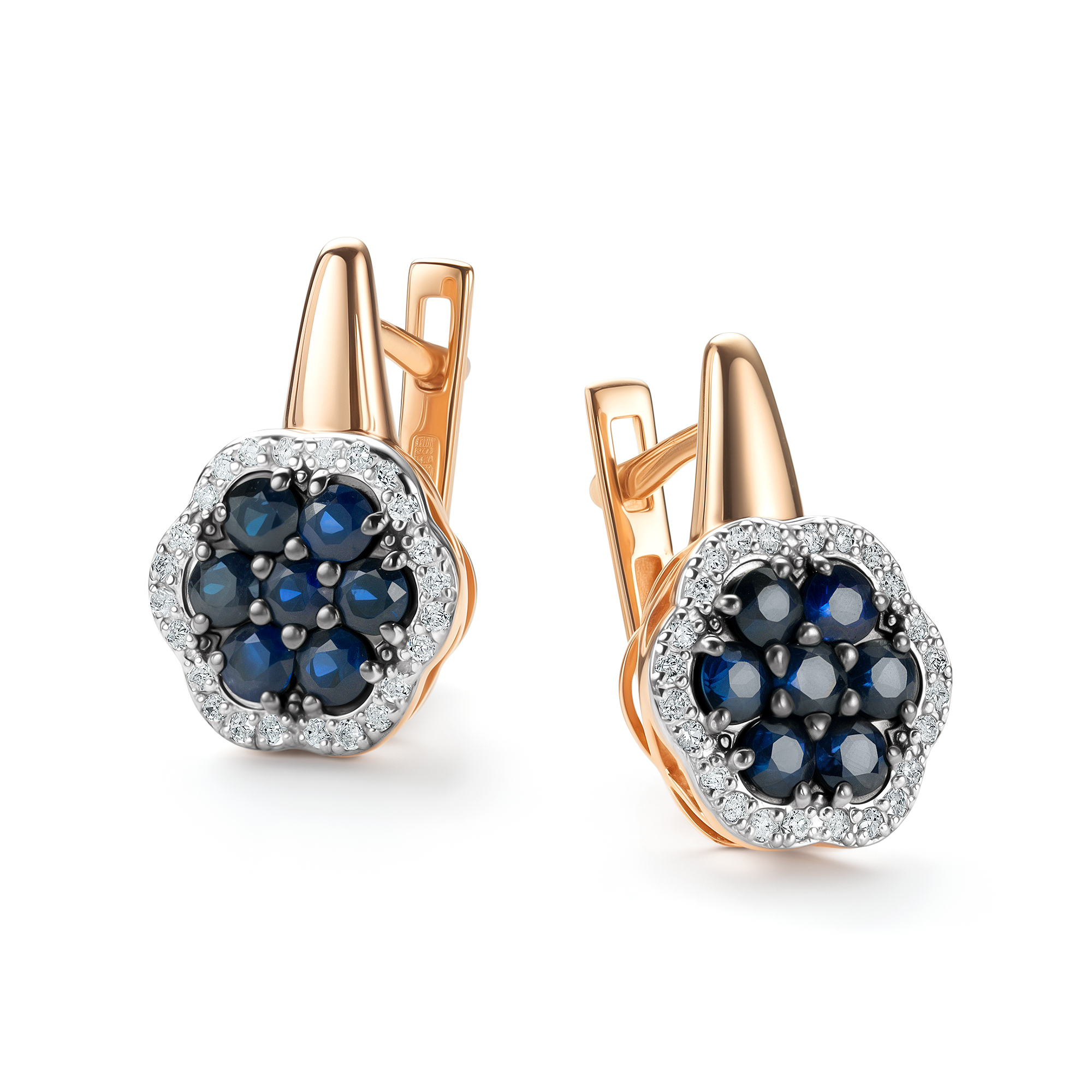 Серьги | 48 Бр кр-57 0,192Ct 4/5А ,14 Сапфир Кр 1,075Ct 2/2 |