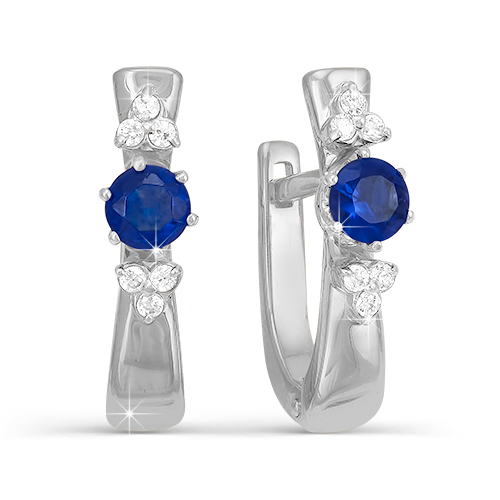 Серьги, Белый | 12 Бр Кр 57 0,094Ct 4/4А ,2 Сапф 1,001Ct 2/2 |
