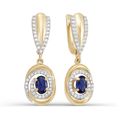 Серьги | 86 Бр кр-57 0,302Ct 4/4А ,2 Сапф 0,989Ct 2/2 |