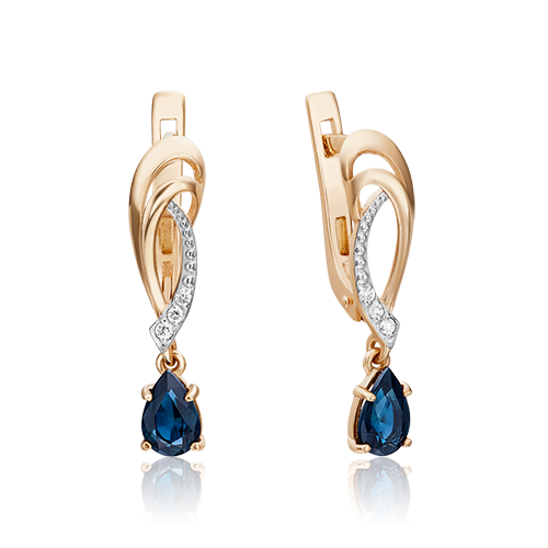 Серьги | 4 Бр кр-57 0,020Ct 4/5А ,2 Бр кр-57 0,020Ct 4/5А ,2 Сапфир Гр 1,110Ct 2/2 |