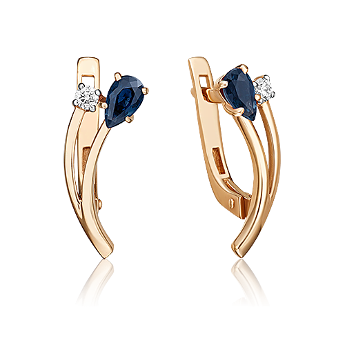 Серьги | 2 Бр кр-57 0,070Ct 3/5А ,2 Сапфир Гр 0,440Ct 2/2 |