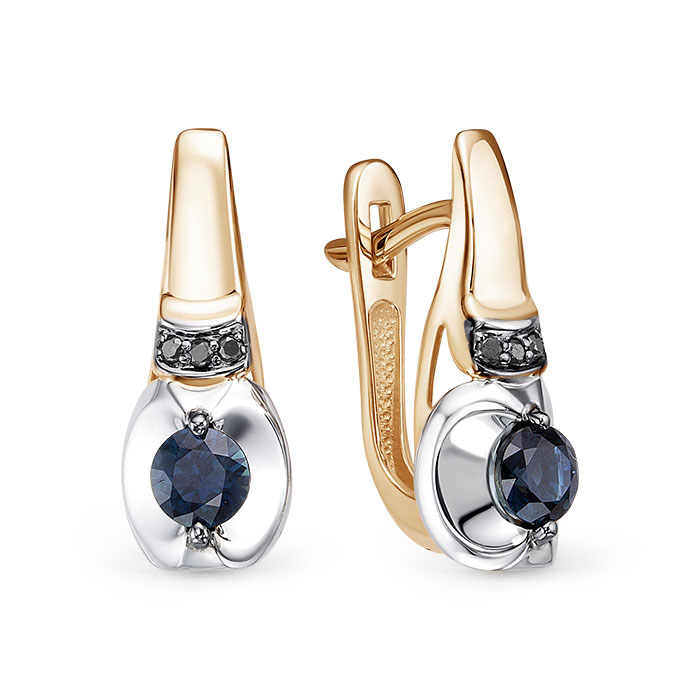Серьги, Комбинированное | 6 Бр кр-57 0,029Ct 7/6А ,2 Сапфир Кр 0,756Ct 2/2 |